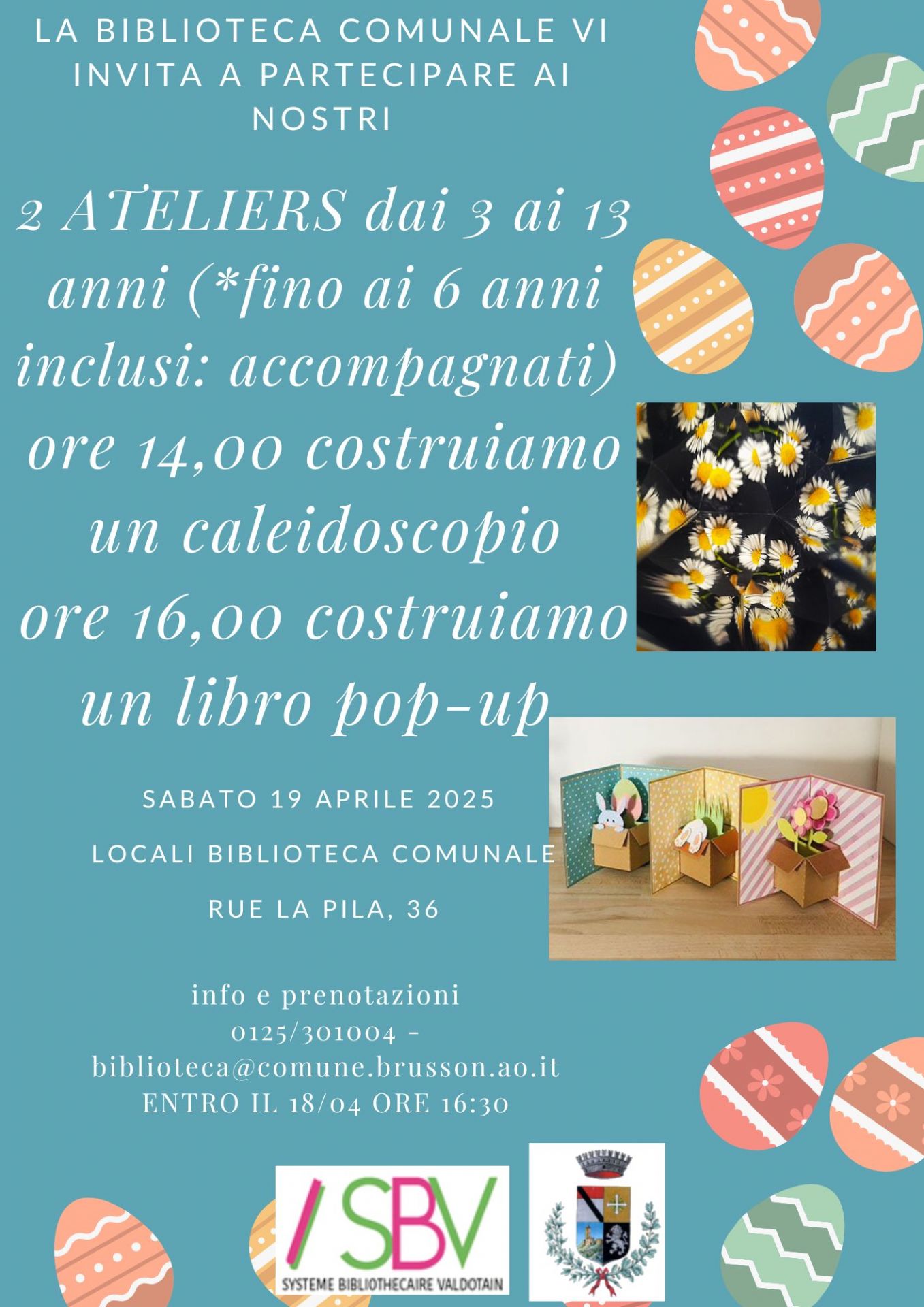 La biblioteca comunale vi invita a partecipare ai nostri 2 ateliers dai 3 ai 13 anni (*fino ai 6 anni inclusi: accompagnati)