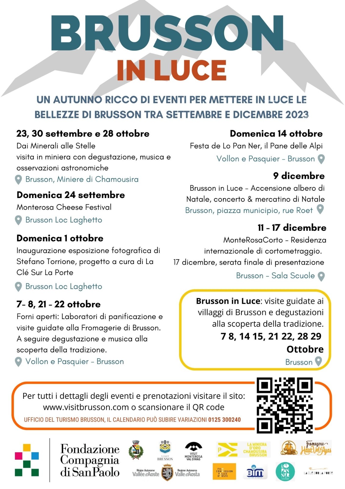 Per tutti i dettagli degli eventi e prenotazioni visitare il sito www.visitbrusson.com