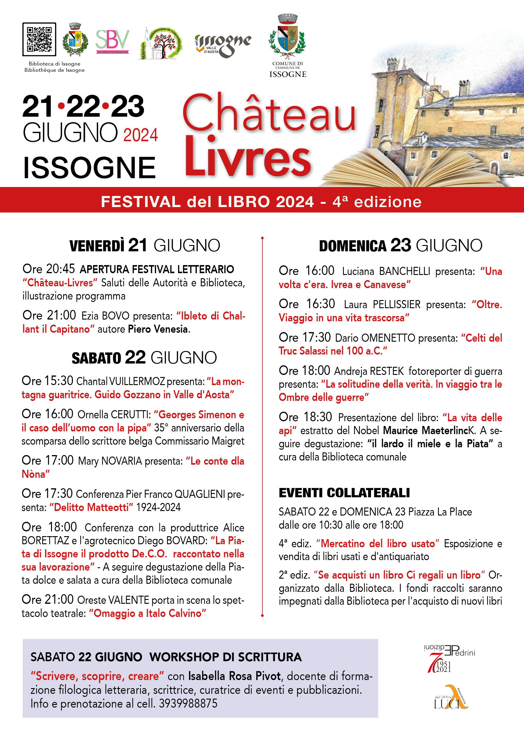 Ore 21.00 - BOVIO EZIA con il saggio “Ibleto di Challand Il Capitano” personaggio storico legato al Castello di Issogne;