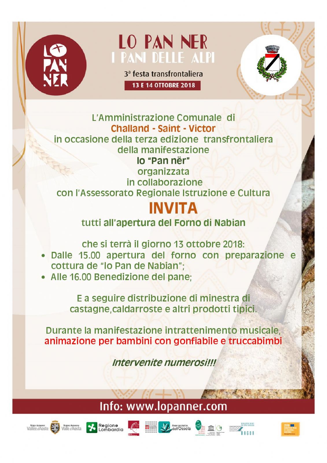 L’Amministrazione Comunale di Challand - Saint - Victor in occasione della terza edizione transfrontaliera della manifestazione lo “Pan nër” organizzata in collaborazione on l’Assessorato Regionale Istruzione e Cultura