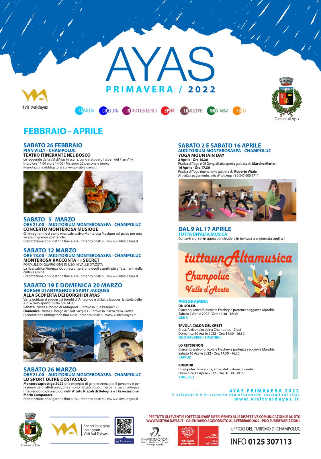 Ricordiamo che, se non diversamente indicato, le prenotazioni sono al link www.visitvaldayas.it (i link saranno attivi da Lunedì 14 pomeriggio)