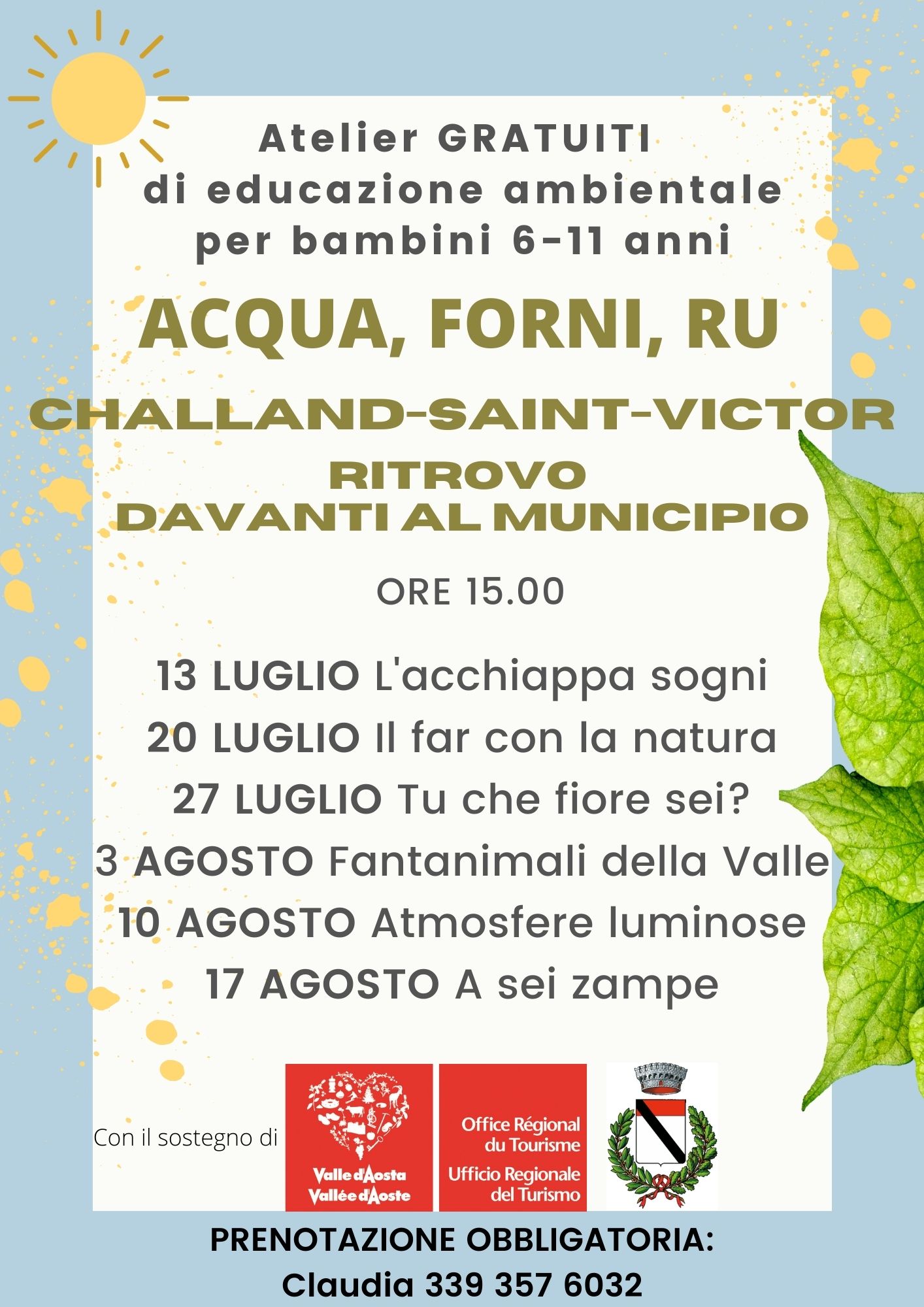 I Comuni di Brusson, Ayas, Challand-Saint-Anselme e Challand-Saint-Victor in collaborazione con l'Office Régional du Tourisme organizzano delle animazioni per bambini. Per ulteriori informazioni vedere locandine allegate.