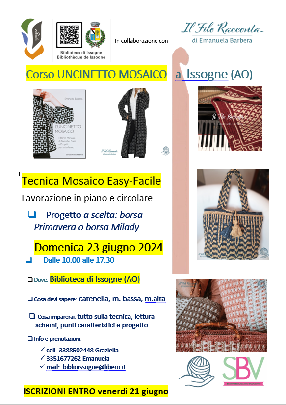 e vede la partecipazione di Emanuela Barbera con "Uncinetto mosaico"! nuova tecnica per lavorare all'uncinetto, un nuovo modo di lavorare a più colori attraverso le tre principali tecniche: overlay - inset - easy.