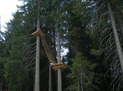 Una passeggiata sugli alberi in completa sicurezza, con 2 percorsi differenziati a seconda delle abilità, con altezze che vanno dai 2 ai 12 metri. Un percorso acrobatico con 30 attività formate da piattaforme , ponti e scale di ogni genere che collegano gli alberi tra di loro.