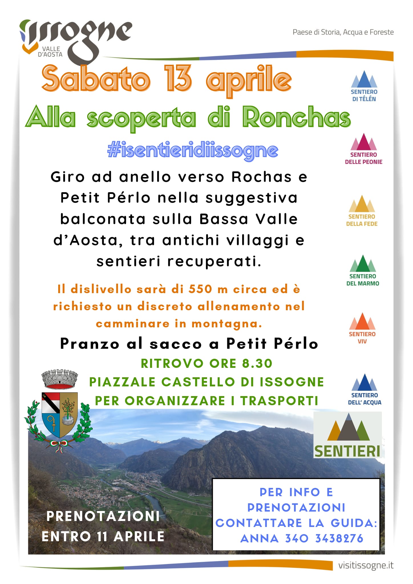 Passeggiata escursionistica: giro ad anello verso Ronchas e Petit Perlo nella suggestiva balconata della Bassa Valle d'Aosta.