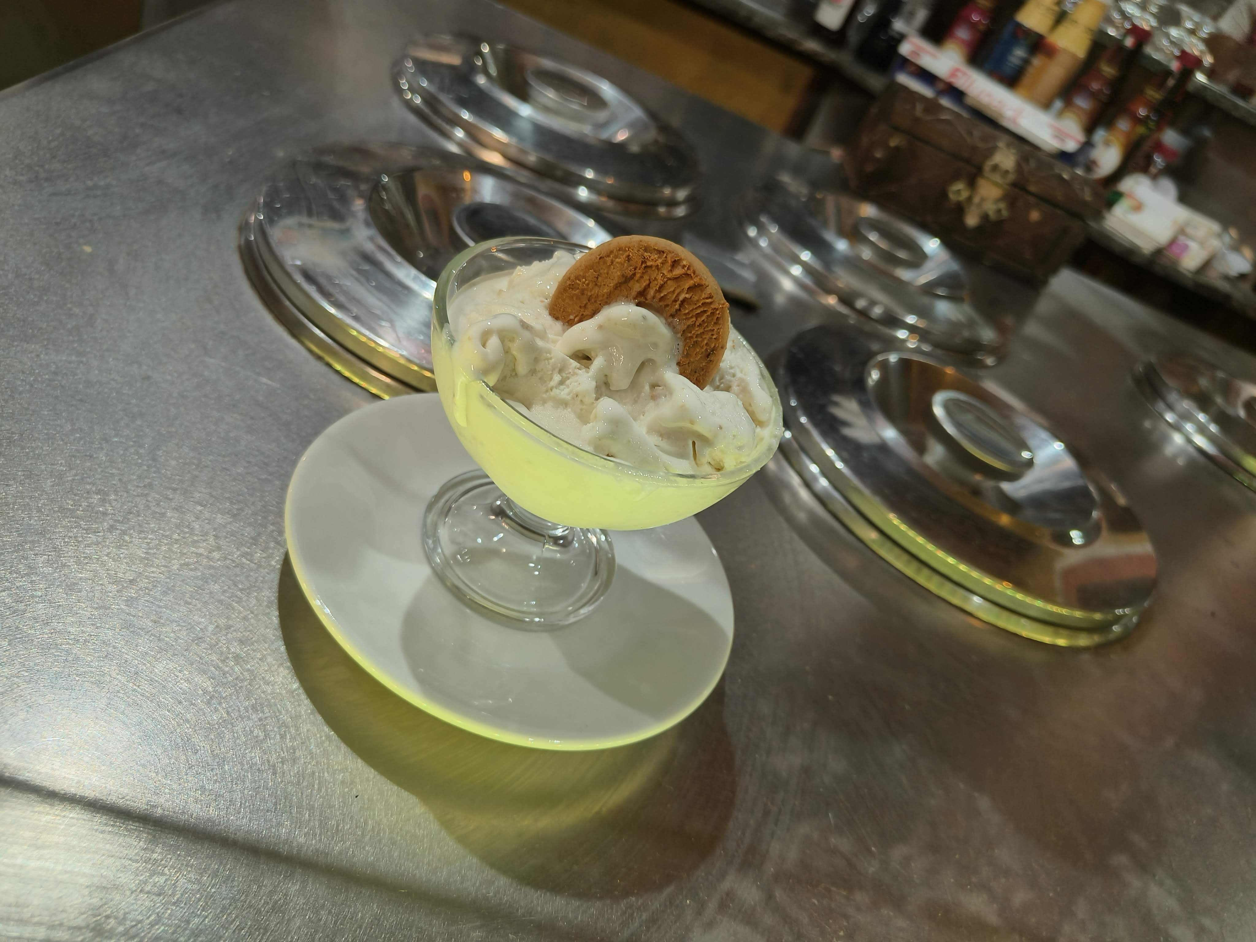 il gelato prodotto dal Bar Brenve al gusto dei biscotti alla lavanda “Le Piquiode Fior” di “Les Gourmandises” di Alice Borettaz di Issogne.