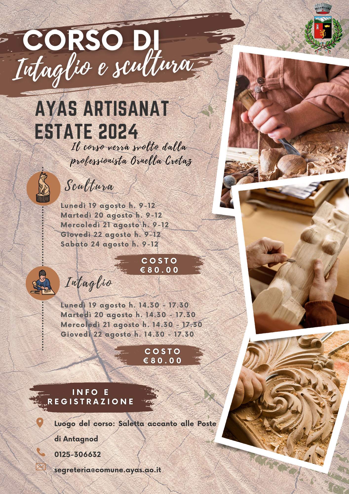 Corso di Intaglio e scultura Ayas Artisanat Estate 2024 con Cretaz Ornella