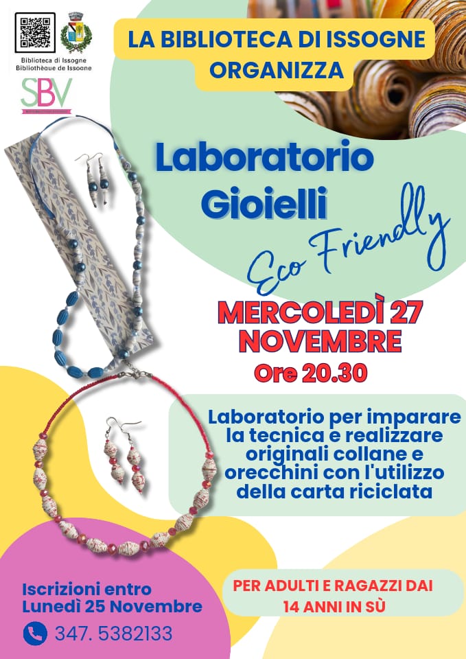 Laboratorio per imparare la tecnica e realizzare originali collane e orecchini con l'utilizzo della carta riciclata.