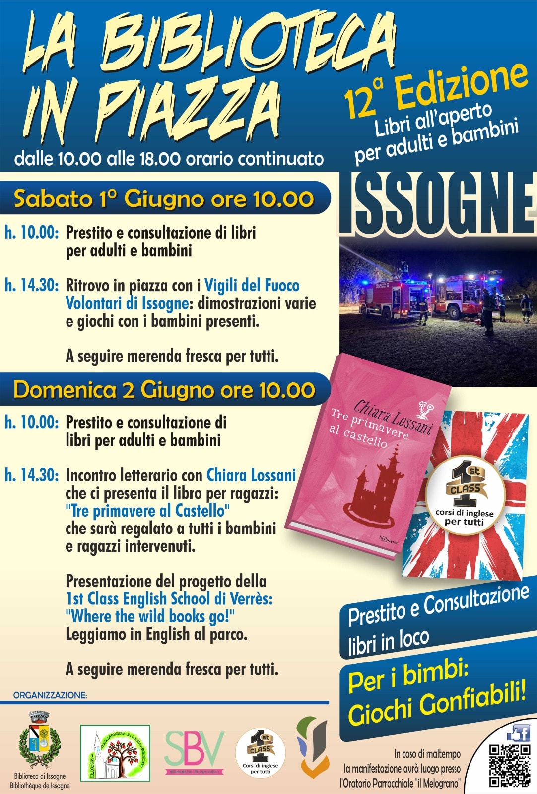Per due giorni la Biblioteca esce dal chiuso della sua sede per conquistare lo spazio aperto della piazza del paese, di fianco al castello, dove sarà allestito un padiglione con libri per adulti e bambini. Per i più piccoli sono previsti giochi e animazioni.