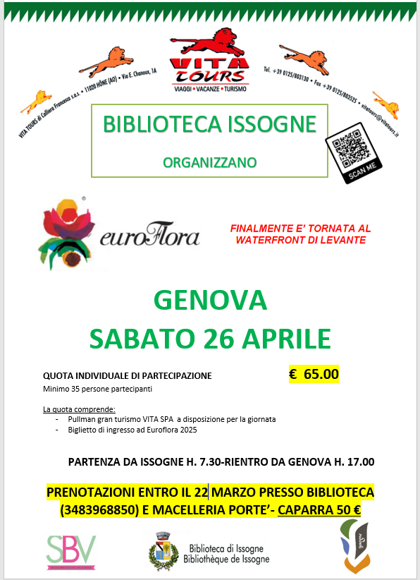 Prenotazioni entro il 22 marzo 2025 presso la Biblioteca e presso la Macelleria Porté