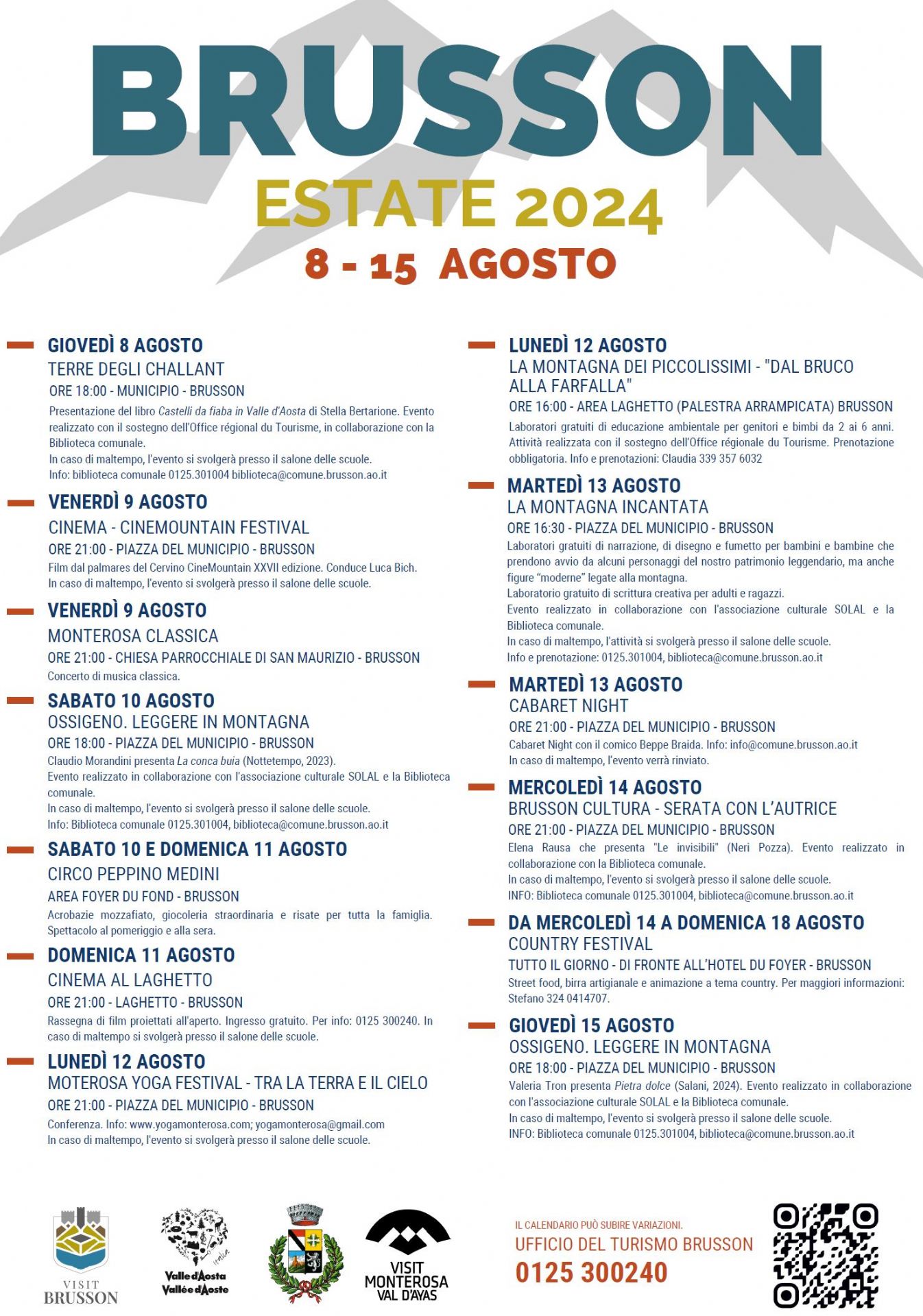 Info: Biblioteca comunale 0125.301004, biblioteca@comune.brusson.ao.it