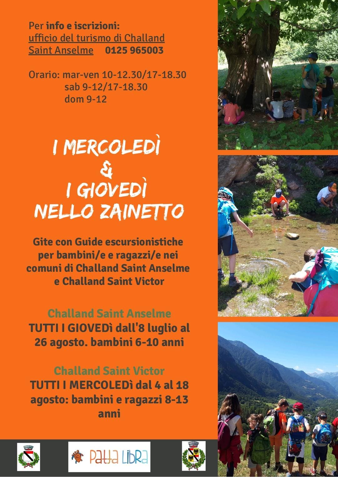 Gite con guide escursionistiche per bambini/e e ragazzi/e nei Comuni di Challand Saint Anselme e Challand Saint Victor
