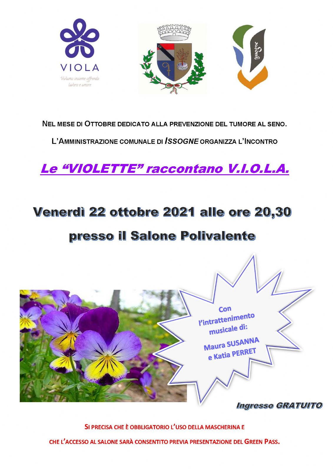 Presso il Salone Polivalente di Issogne, il giorno 22 ottobre 2021 alle ore 20:30 si terrà una serata dedicata a coloro che sono stati colpiti dal tumore al seno.