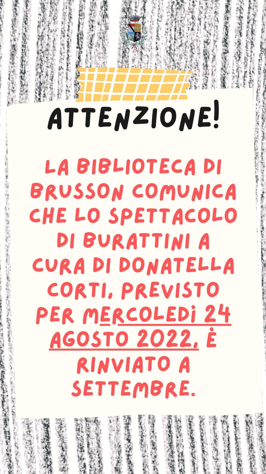 mercoledì 24 agosto non si terrà lo spettacolo di burattini delle 18