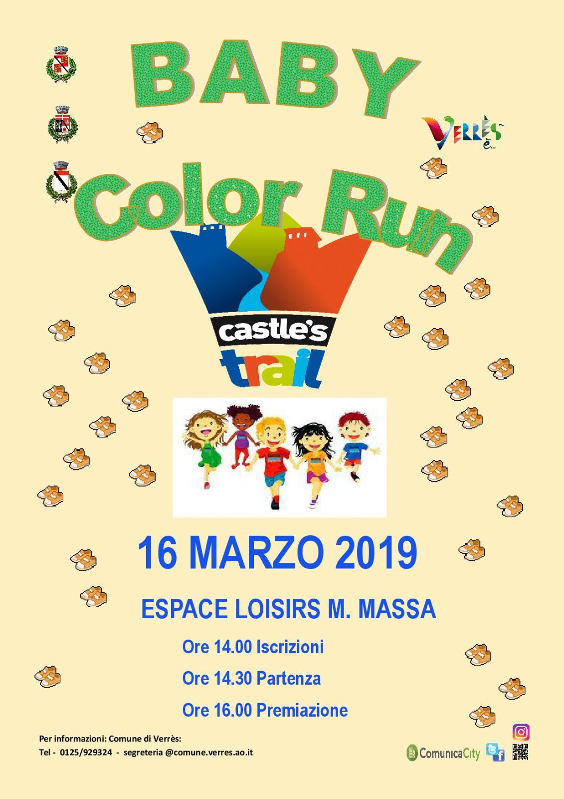 Nell'ambito della terza edizione del "Castle's Trails" si svolgerà sabato 16 marzo 2019 il "BABY COLOR RUN".