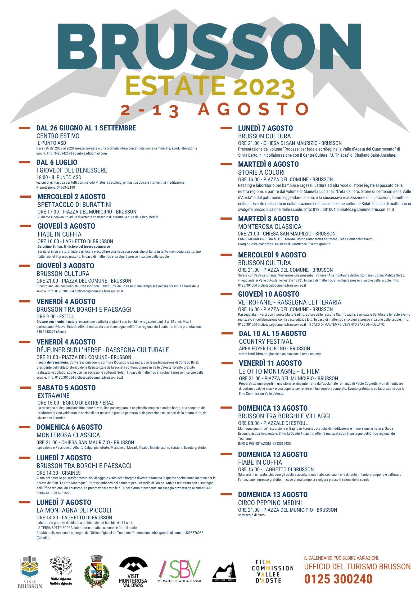 BRUSSON ESTATE 2023 - DAL 02.08 al 13.08