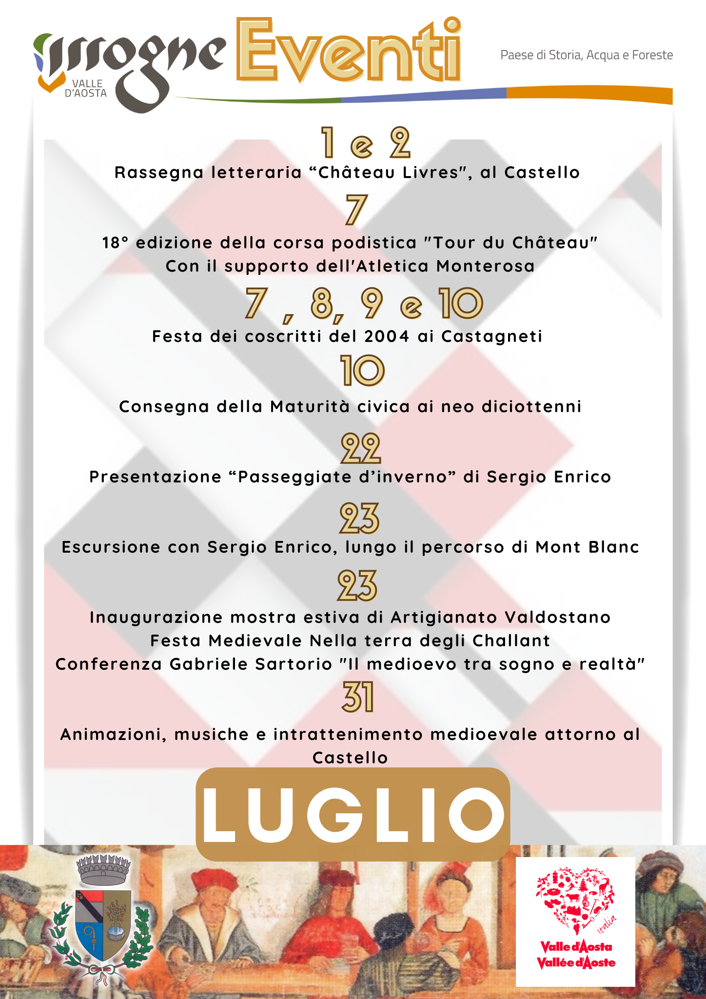 Eventi, manifestazioni che si svolgono durante il mese di Luglio 2022 sul territorio di Issogne