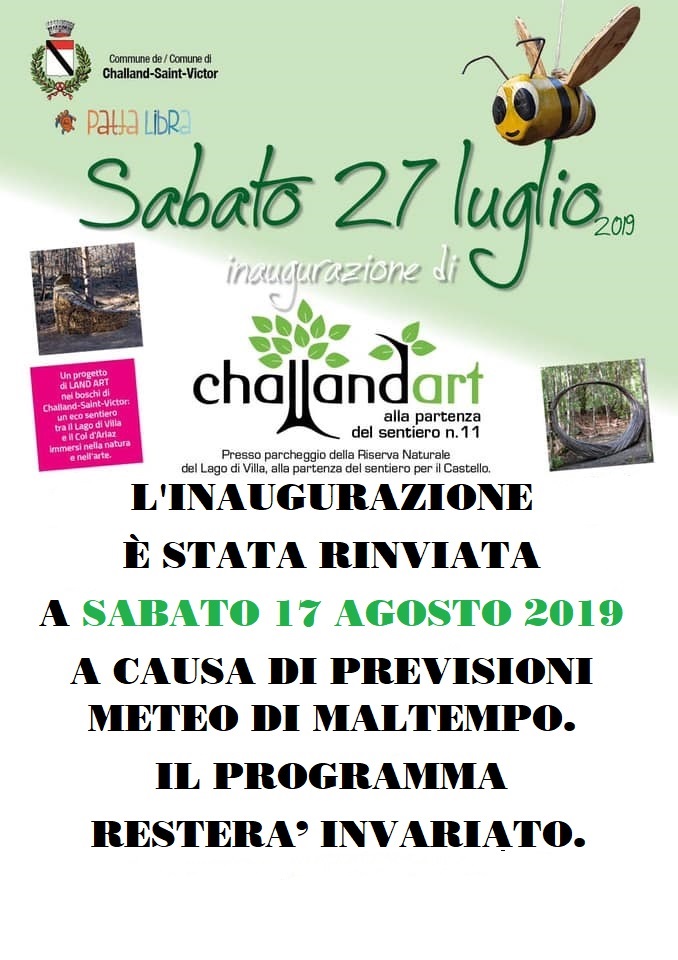 SI COMUNICA CHE L’INAUGURAZIONE È STATA RINVIATA A SABATO 17 AGOSTO 2019 A CAUSA DI PREVISIONI METEO DI MALTEMPO. IL PROGRAMMA RESTERA’ INVARIATO.