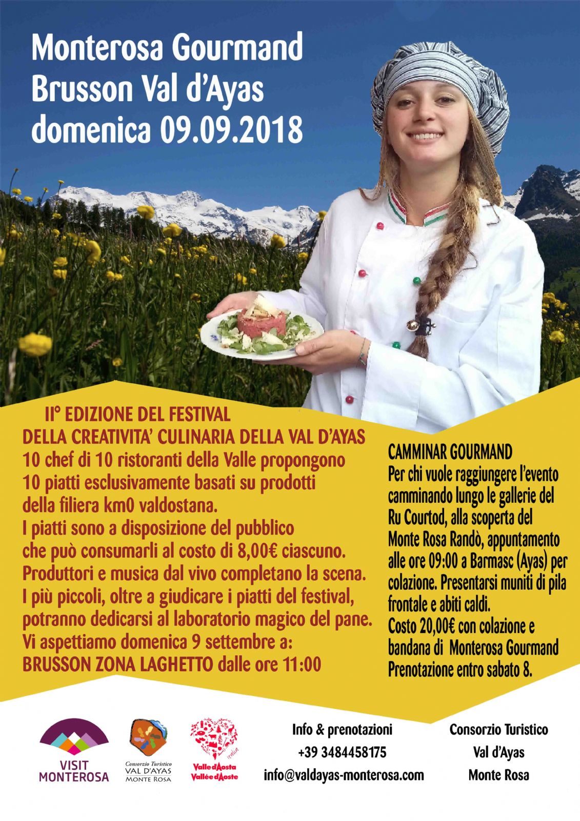 Il festival della creatività culinaria della Val d'Ayas ha come obiettivo valorizzare ed abbinare l'alta cucina degli Chef con la filiera km0, protagonista quest'ultima dei piatti che verranno presentati e venduti dai 10 chef e rappresentata dal "mercato gourmand" dei produttori locali che da tutta la Valle d'Aosta verranno a esporre e vendere i prodotti del nostro territorio