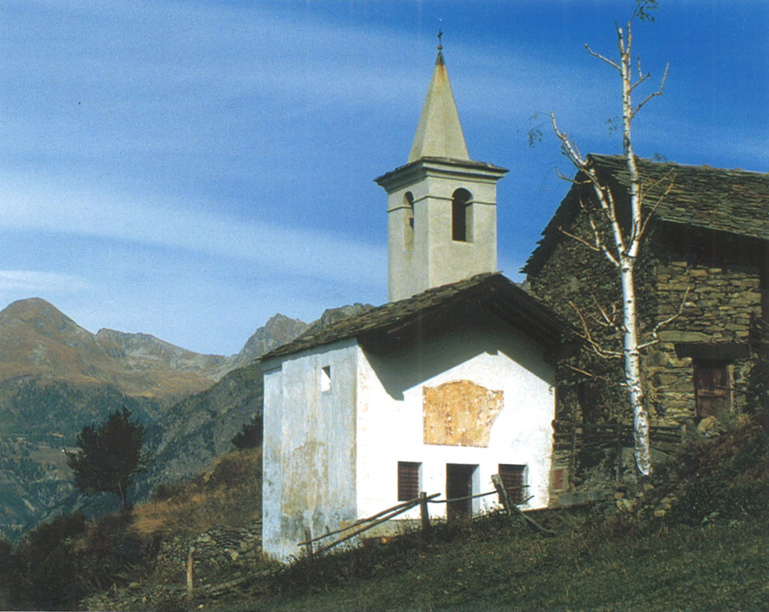 Situata nella frazione omonima (1.169 metri), risale al 1747 ed è dedicata a San Grato. Col suo candore, offre un suggestivo spettacolo.