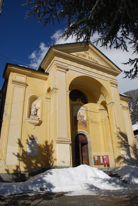 La chiesa fu progettata dall’archittetto Giuseppe Lancia e decorata dai fratelli Artari di Verrès. La parrocchiale conserva altari settecenteschi in legno intagliato, dipinto e dorato, oltre a una serie di oggetti di arte sacra.
