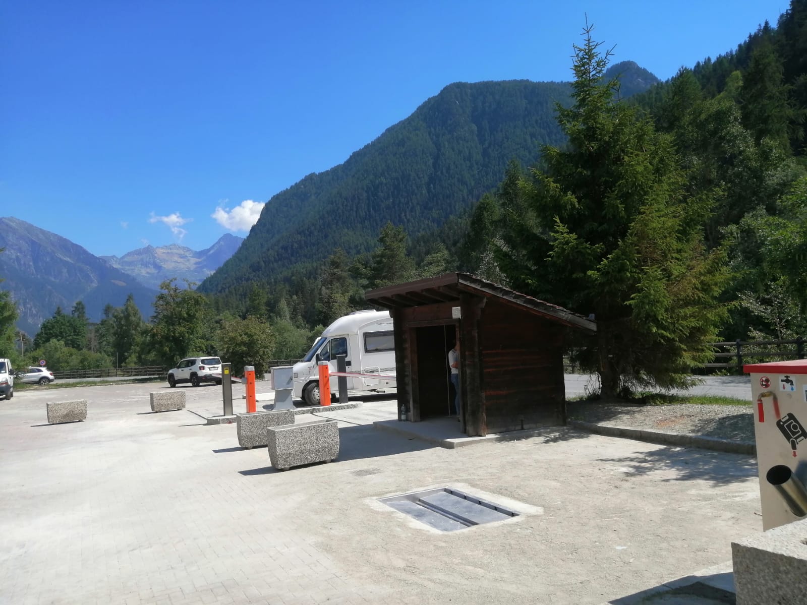 - un pozzetto di carico e scarico con apposita corsia di accesso in cemento e vasca centrale autopulente in acciaio, con a fianco la colonnina multifunzione dotata di un punto di scarico per il wc chimico portatile