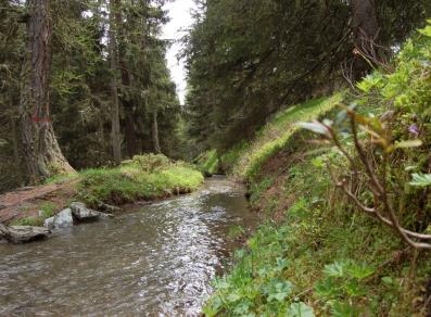 A Barmasc, che dista circa 1 km da Antagnod, prendere il largo sentiero n. 105 che si stacca al margine del parcheggio e seguirlo fino ad incrociare il Ru Courtod a quota 1970 m circa. Seguire quindi, verso destra, il sentiero pianeggiante n. 5 che costeggia il canale, oltrepassare l’alpeggio di Chavannes, quindi quello di Granaz. Nei pressi dell ’alpe Soudaz, dopo aver incrociato la strada che sale agli alpeggi di Vascoccia, proseguire sul sentiero a valle dell’agriturismo “La Tschavana” fino al bivio con il sentiero n. 3. Imboccato tale percorso sulla destra, scendere alla Fraz. Mandriou.